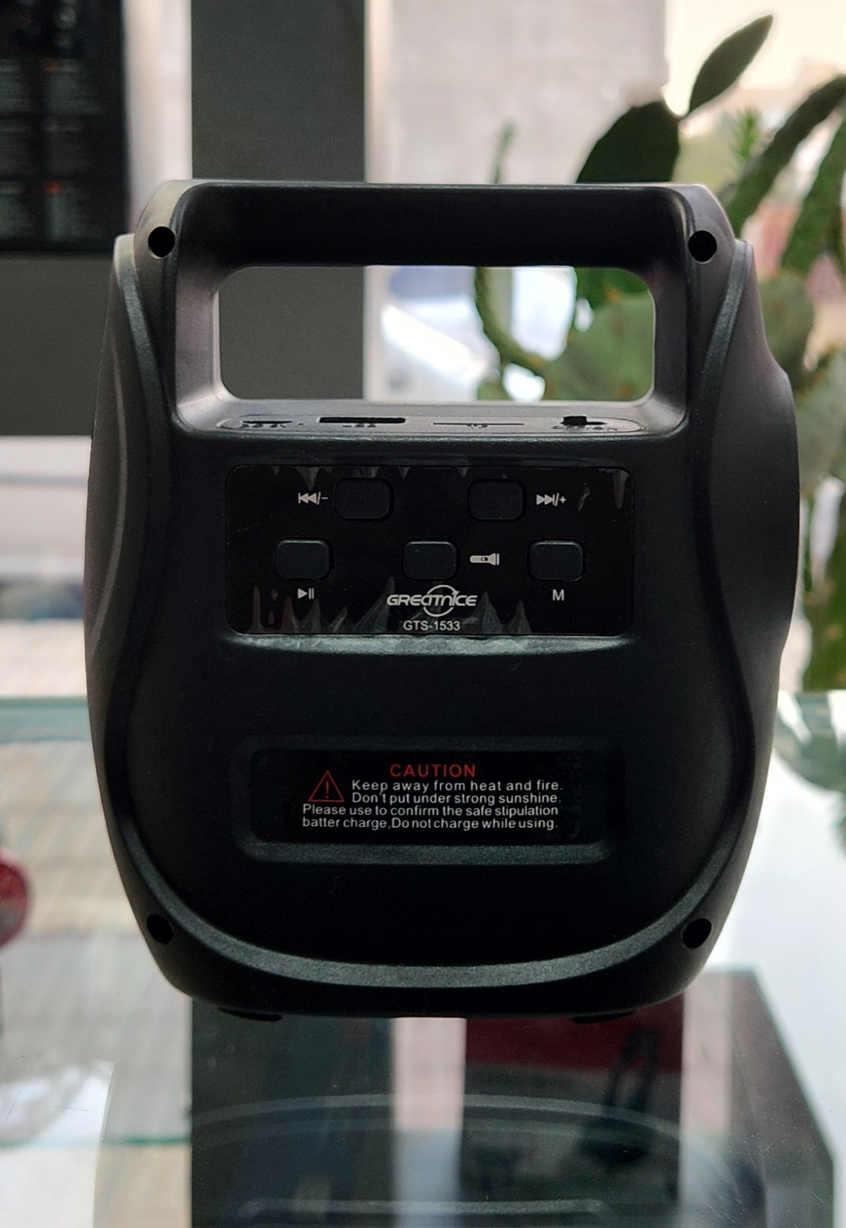 GTS-1533 Portable Bluetooth Speaker – Black/Red | Memory Card, Flash, 3-Mode Torch & Handle