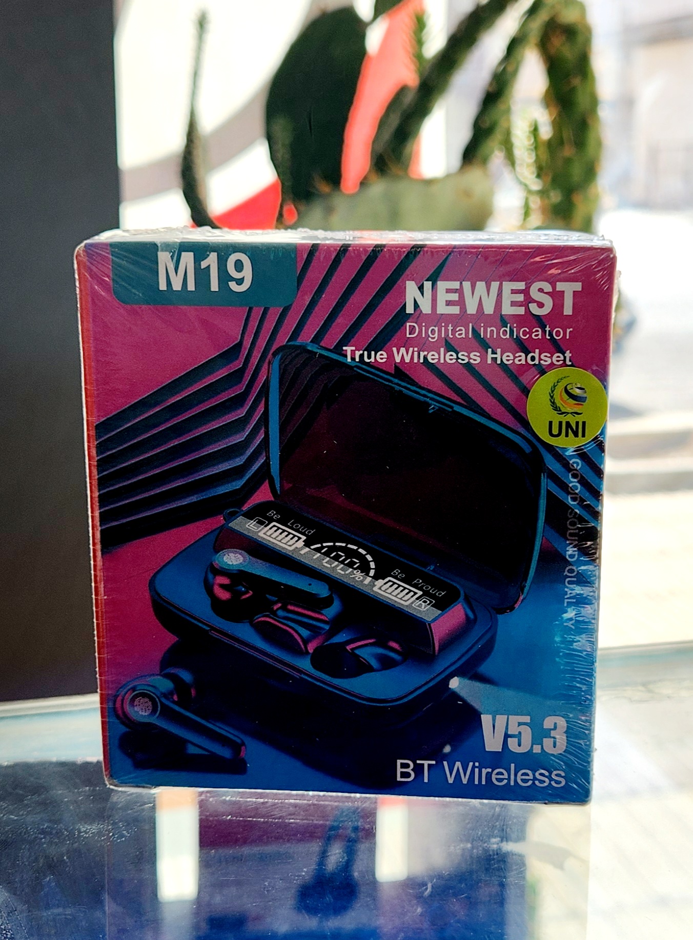 هندزفری بلوتوثی M19 Newest مدل جدید با کیس پاوربانک دارا اصلی، بلوتوث ۵.۳ و عمر باتری بالا